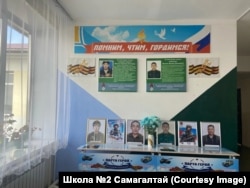 На стене школы также портреты лейтенанта артиллерии Долаана Донгака, фермера Белека Биче-Оола, воевавшего в составе ЧВК "Вагнер", добровольцев-контрактников Марата Шулуу-Маадыр и Эртине Ондар. Однако погибших из села Самагалтай гораздо больше, чем портретов – не менее 17 человек. Например, в июле 2024 года в Украине погиб 28-летний Аяс Эренчин, который отправился на фронт из колонии.